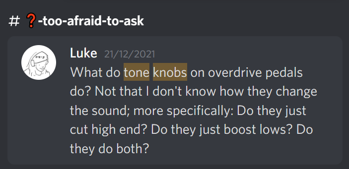 Recently a question popped up in the CSGuitars Discord which asked about tone controls on drive pedals: What are they doing? Cutting treble? Boosting Bass? Or something else entirely?